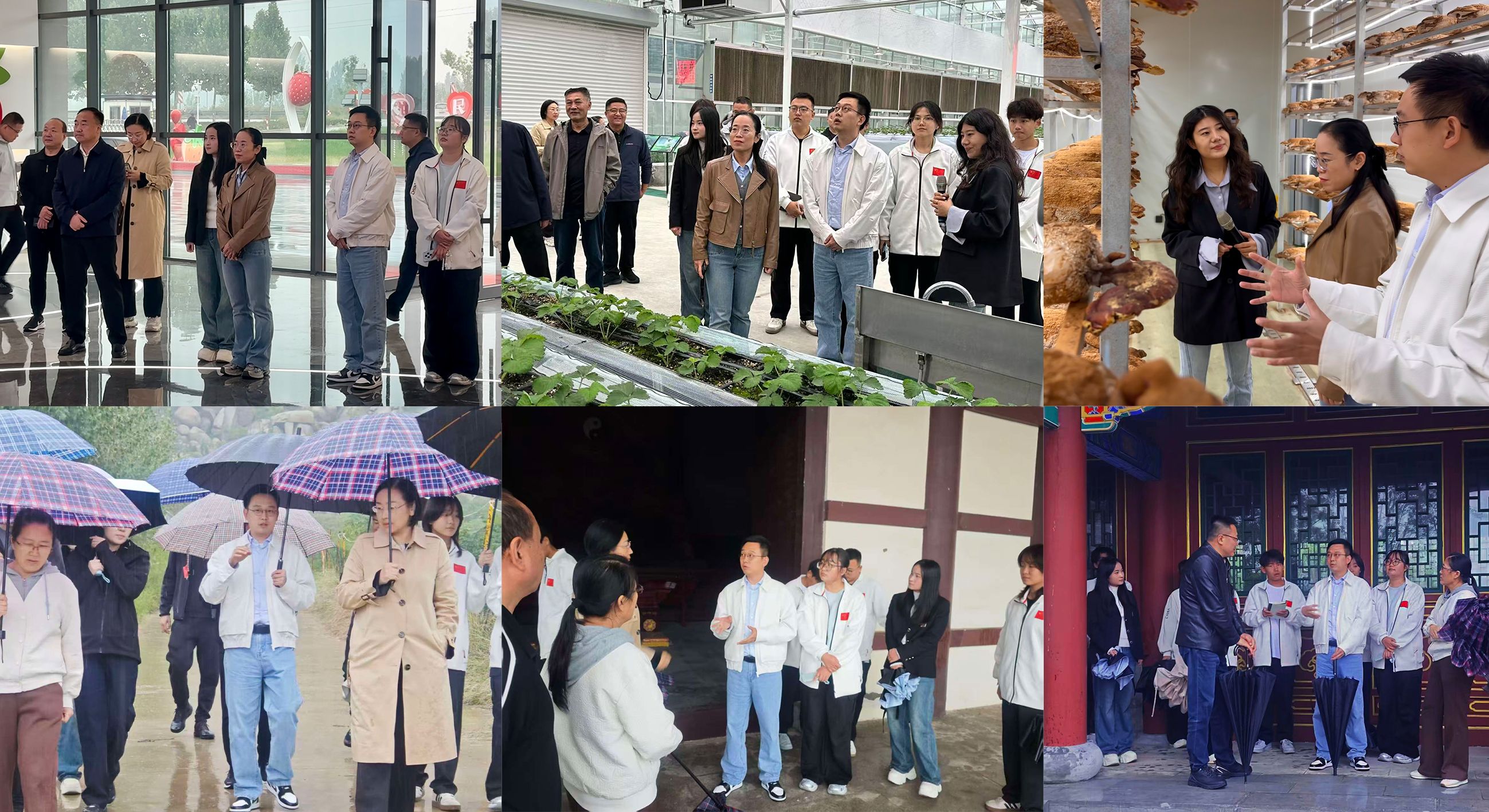 师生团队先后调研邹城草莓共富产业园、蘑菇馆、牙山、伏羲文化产业园及太平湿地公园等重点项目,深入考察智能温室、机器人采摘等现代农业科技应用成果,重点关注历史文化资源与现代科技的融合路径,并就数字化保护与创新展示等议题展开深入交流,为探索文旅融合发展积累了宝贵实践经验。