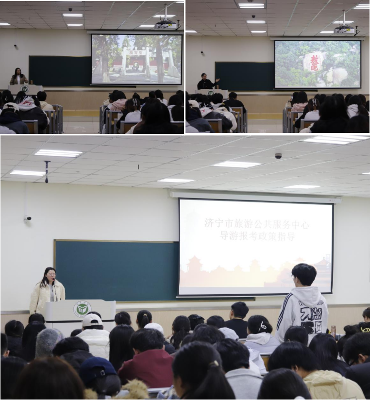 为深化旅游管理专业学生对文旅行业的实践认知,推动产学深度融合,11月5日晚,经济管理学院在3号楼C202教室举办“文化济宁金牌导游进高校风采展示”活动。活动特邀济宁市旅游公共服务中心副主任唐宏、培训部副主任王曦等嘉宾出席。我校文化旅游产业研究院院长陈燕军、旅游管理与服务教育专业负责人王倩玉及百余名师生共同参与。