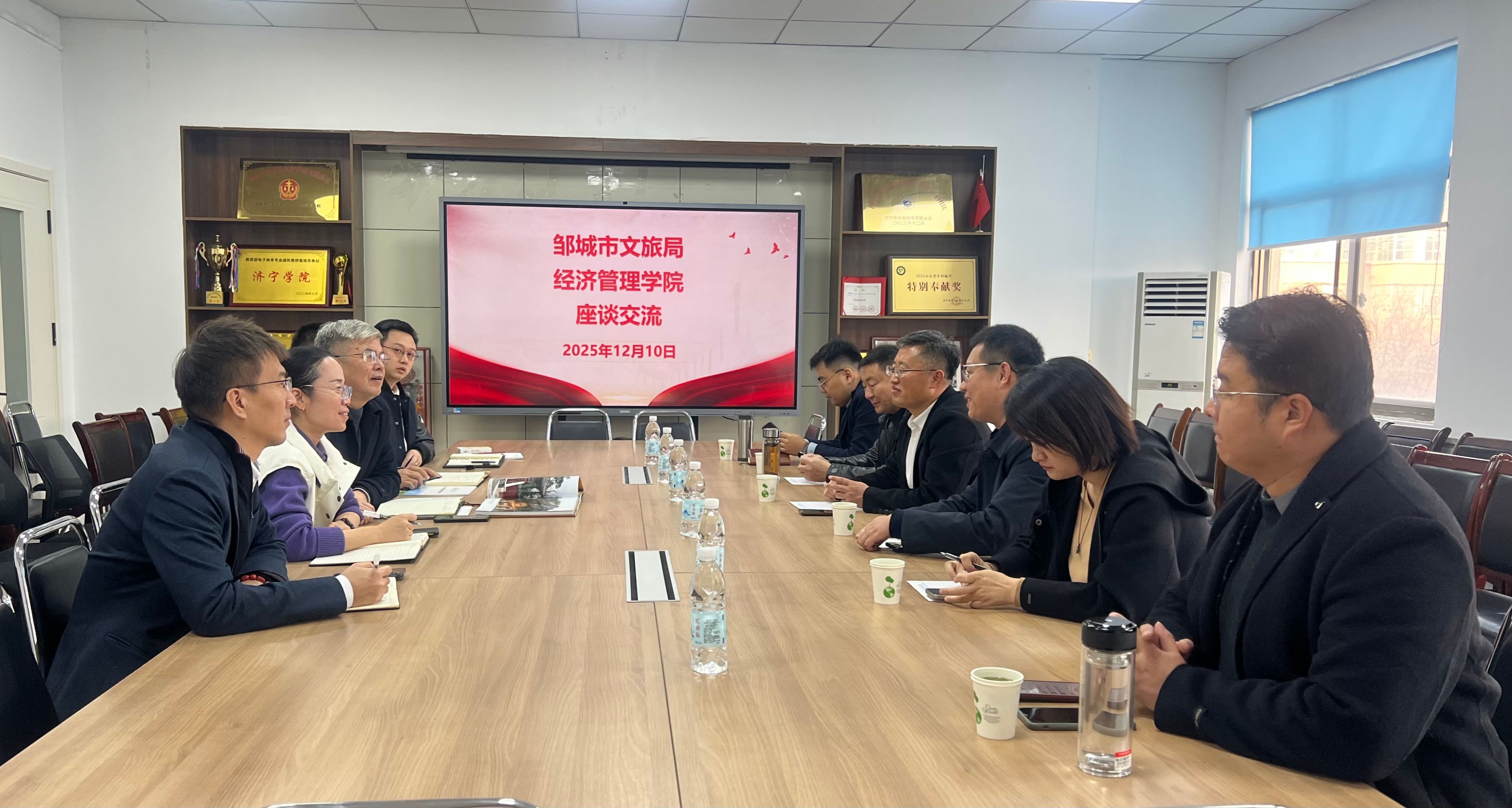 12月10日上午,邹城市文旅局党组书记、局长高胜一行6人到经济管理学院考察交流,双方召开文旅融合高质量发展工作座谈会。经济管理学院党委书记乔东华、院长霍雨慧、党委副书记岳现超、院长助理徐琮、办公室主任赵月阳参加座谈会。