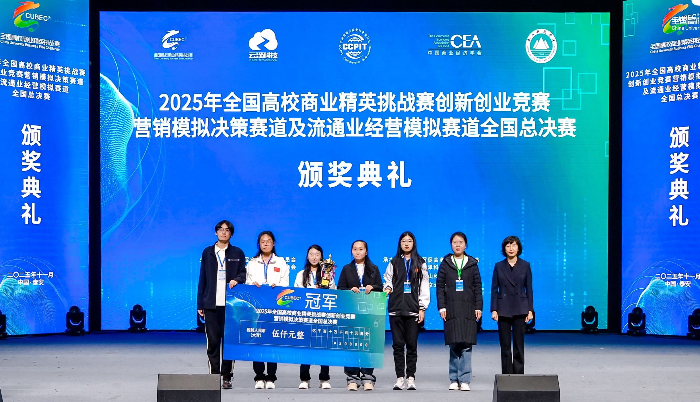 11月30日,2025年全国高校商业精英挑战赛创新创业竞赛营销模拟决策赛道全国精英赛在泰安圆满落幕。我校经济管理学院代表队凭借扎实的专业素养从全国84支参赛精英队伍中脱颖而出,勇夺全国总冠军,实现了我校在该项赛事上的历史性突破。