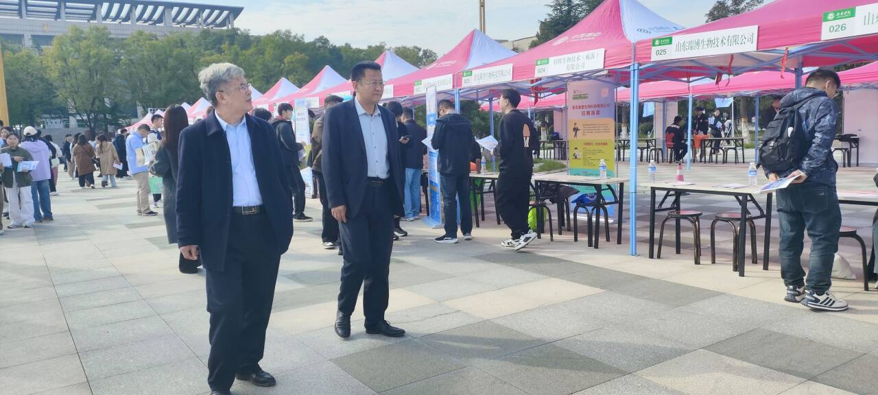 经济管理学院党委书记乔东华、党委副书记岳现超带领毕业班辅导员到现场开展访企拓岗,向企业推介经管学子,并详细了解各单位招聘需求及行业发展趋势。